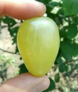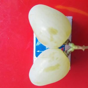 Плоды покрыты тонкой упругой кожицей, которая практически не ощущается при пережевывании. Кожура зрелого винограда имеет янтарно-желтый оттенок и небольшие вкрапления красного цвета в тех местах, где ягоды получали больше всего солнечного света. Внутри плотной и сочной мякоти располагается пара косточек.