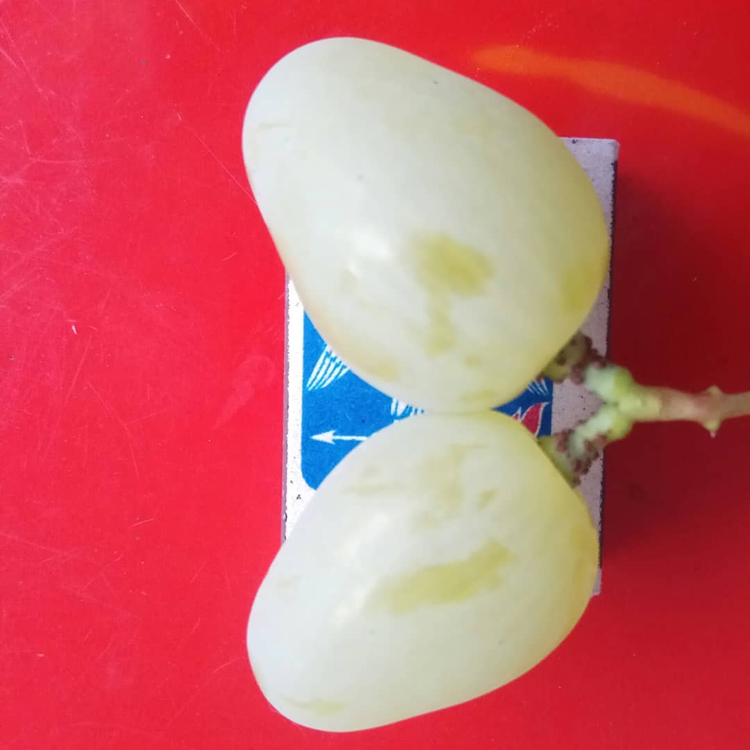 Плоды покрыты тонкой упругой кожицей, которая практически не ощущается при пережевывании. Кожура зрелого винограда имеет янтарно-желтый оттенок и небольшие вкрапления красного цвета в тех местах, где ягоды получали больше всего солнечного света. Внутри плотной и сочной мякоти располагается пара косточек.