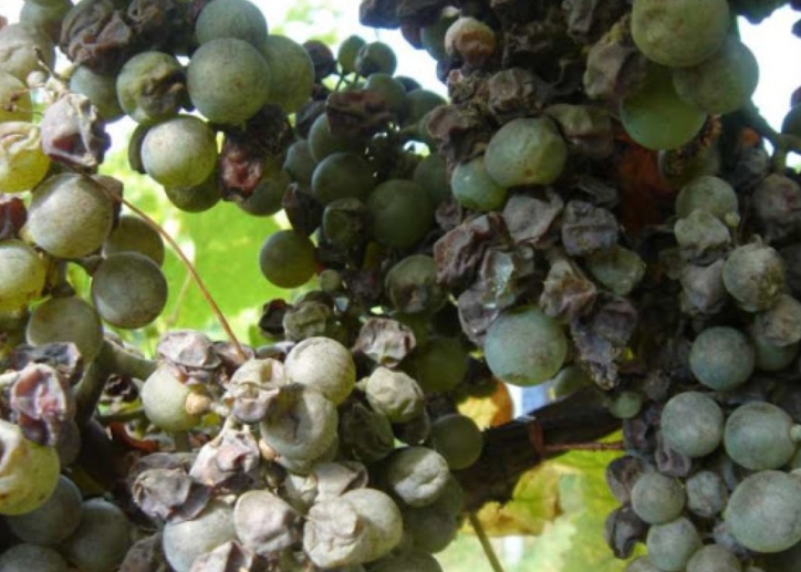Виноград Монарх отличается высокой устойчивостью к распространенным болезням. Больше всего растение страдает от мучнистой росы. Она портит внешний вид плодов и приводит к усыханию лозы. Чтобы снизить вероятность развития заболевания, кусты нужно 2-3 раза за сезон опрыскивать 1%-й бордоской жидкостью.