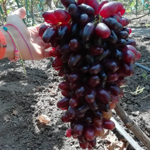 Виноградины имеют вытянутую пальчиковую форму и достигают до 12-16 г в весе. Плоды покрывает не очень толстая мягкая кожура розово-красного или темно-фиолетового цвета.